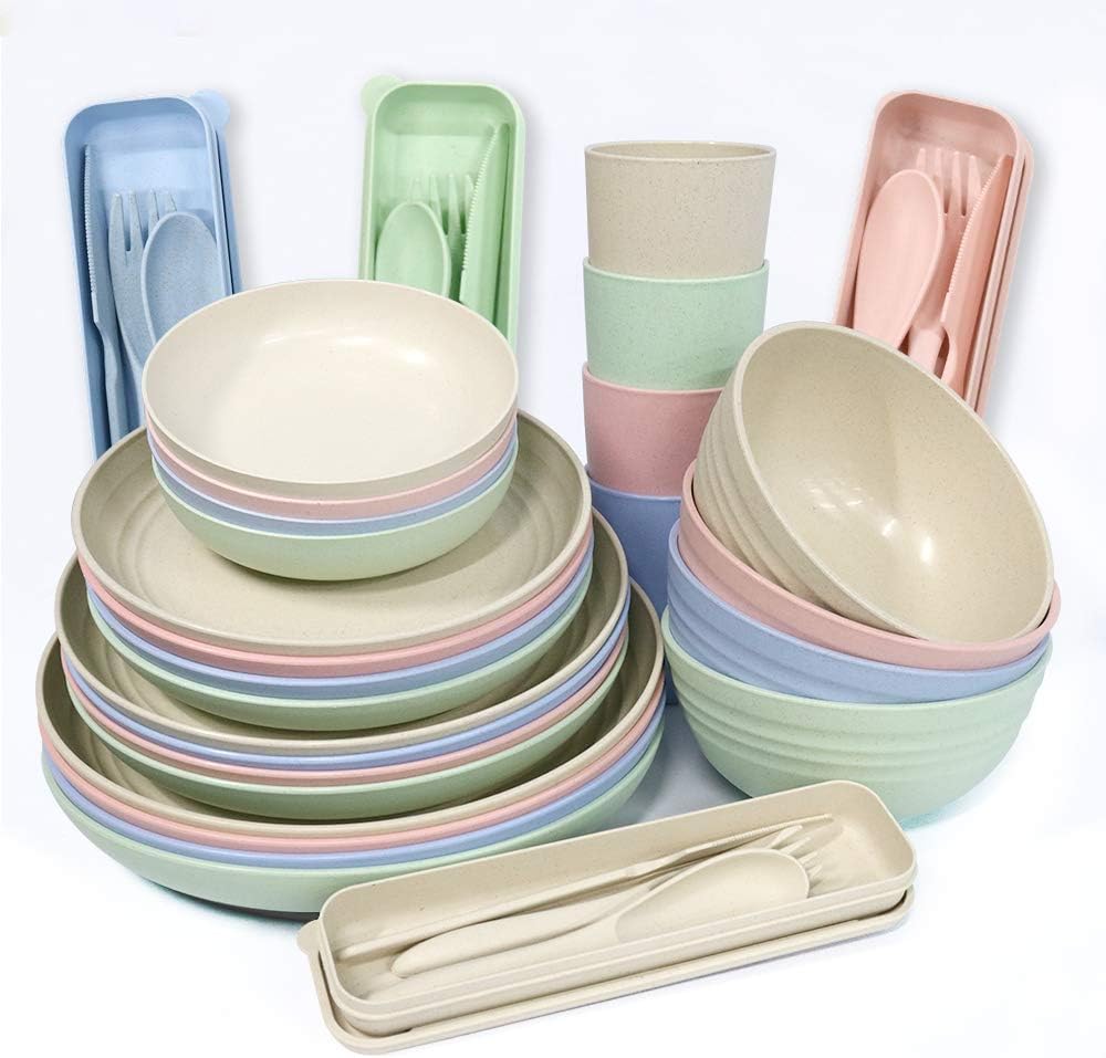 Comparing to other tableware, our wheat straw dinnerware are lightweight for holding. This tableware set is durable and unbreakable, with our unbreakable wheat straw dinnerware set, you no longer have to worry about cutlery, bowls, cups and plates falling and breaking, potentially injuring those you love.
